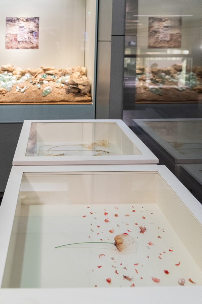 From budding and blooming to wilting and withering, these delicate creations are moments frozen in time; they are portrayed with extreme realism, but will never grow again. The display touches upon the contrast between disappearance and continuity, frailty and resilience, transparency and opacity, memory of the past and the fragile reality of our present lives.