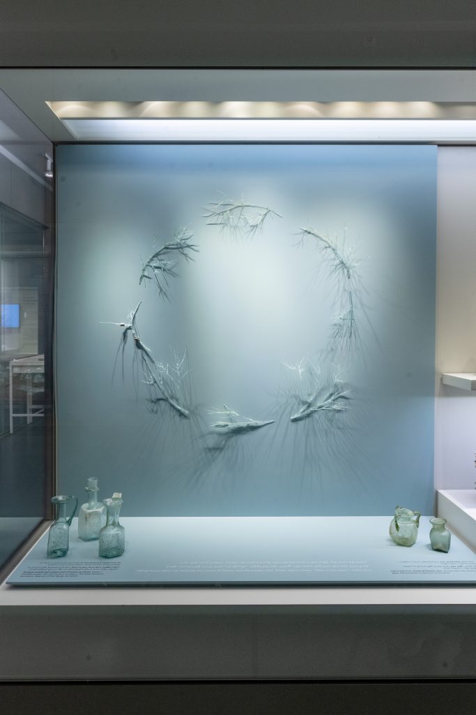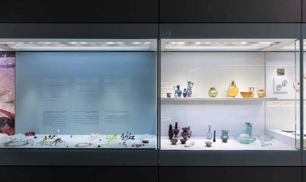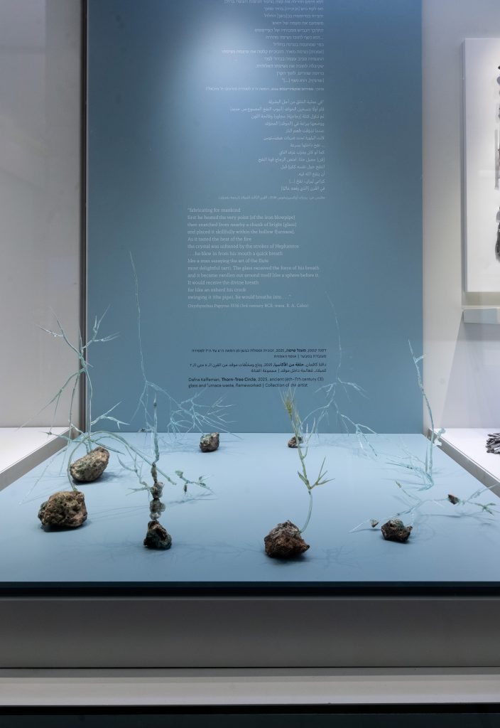 The works of contemporary artist Dafna Kaffeman, which have been integrated into the exhibition of ancient glass, revive the local glass industry, which until the beginning of the 20th century was one of the important traditional crafts in the country. In her works, Kaffeman uses contemporary glass rods and ancient raw glass chunks found in excavations to recreate wheat, thorns, the red everlasting ("blood of the Maccabees") flower, local acacia and pine trees, and even the Oriental hornet, a species that has inhabited the region since ancient times.